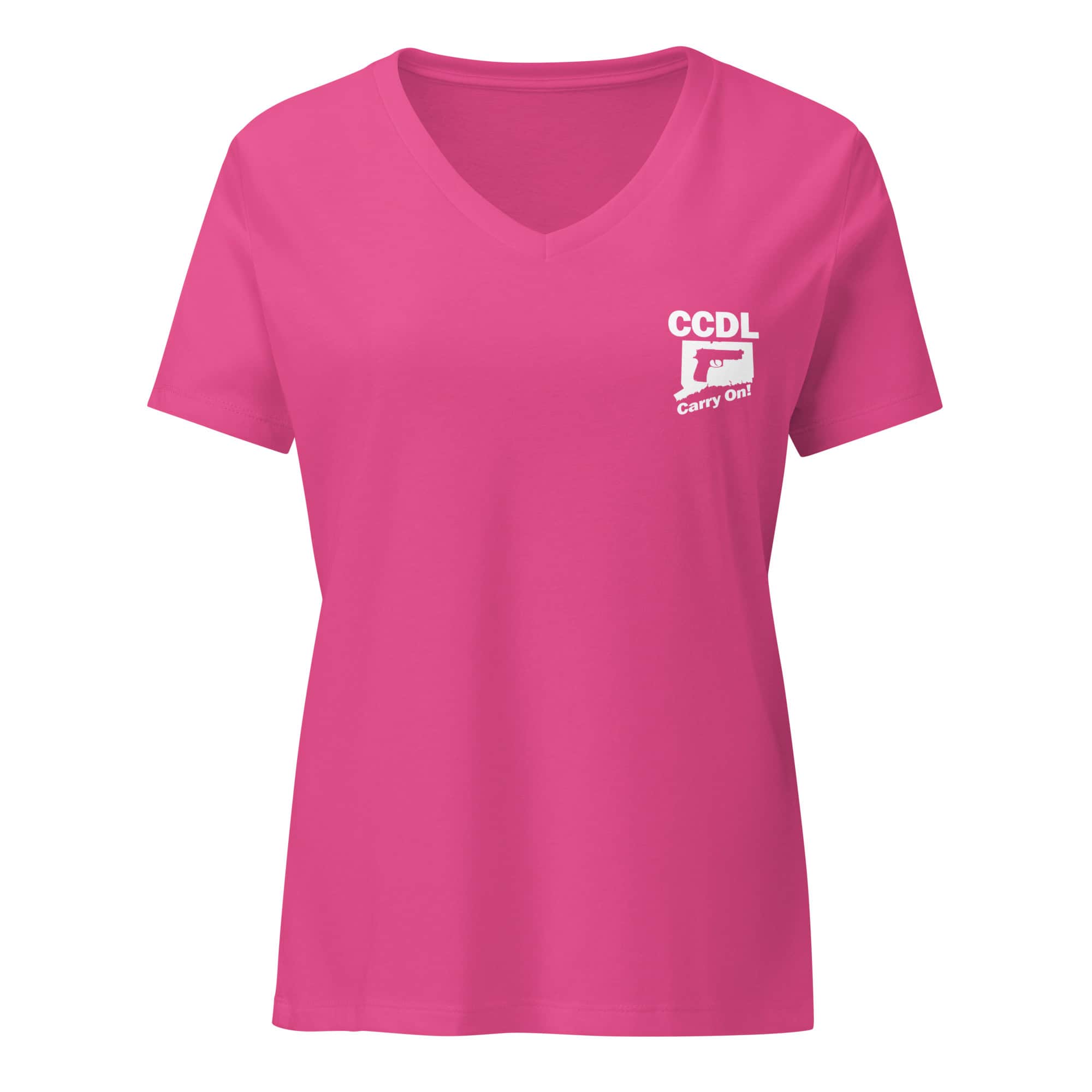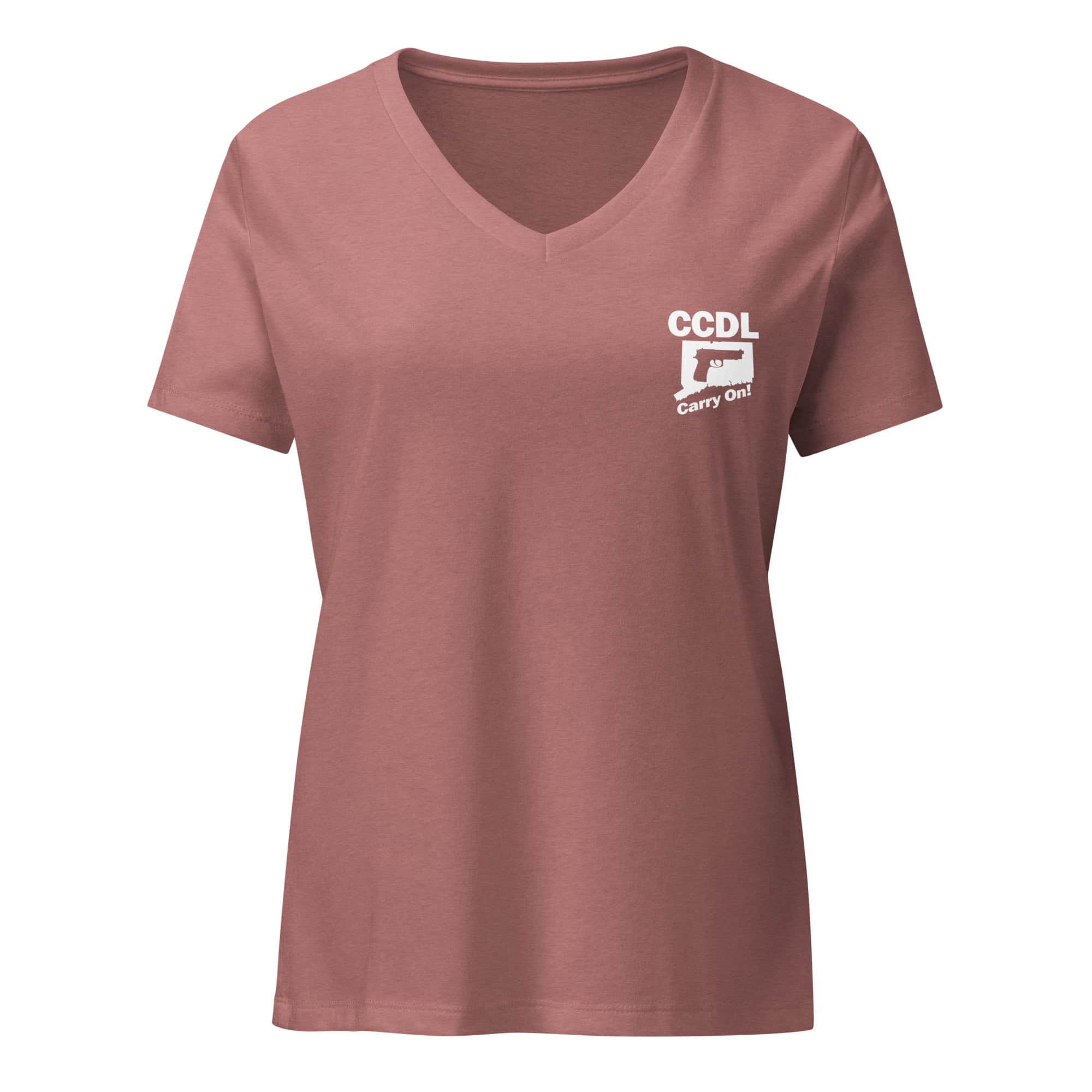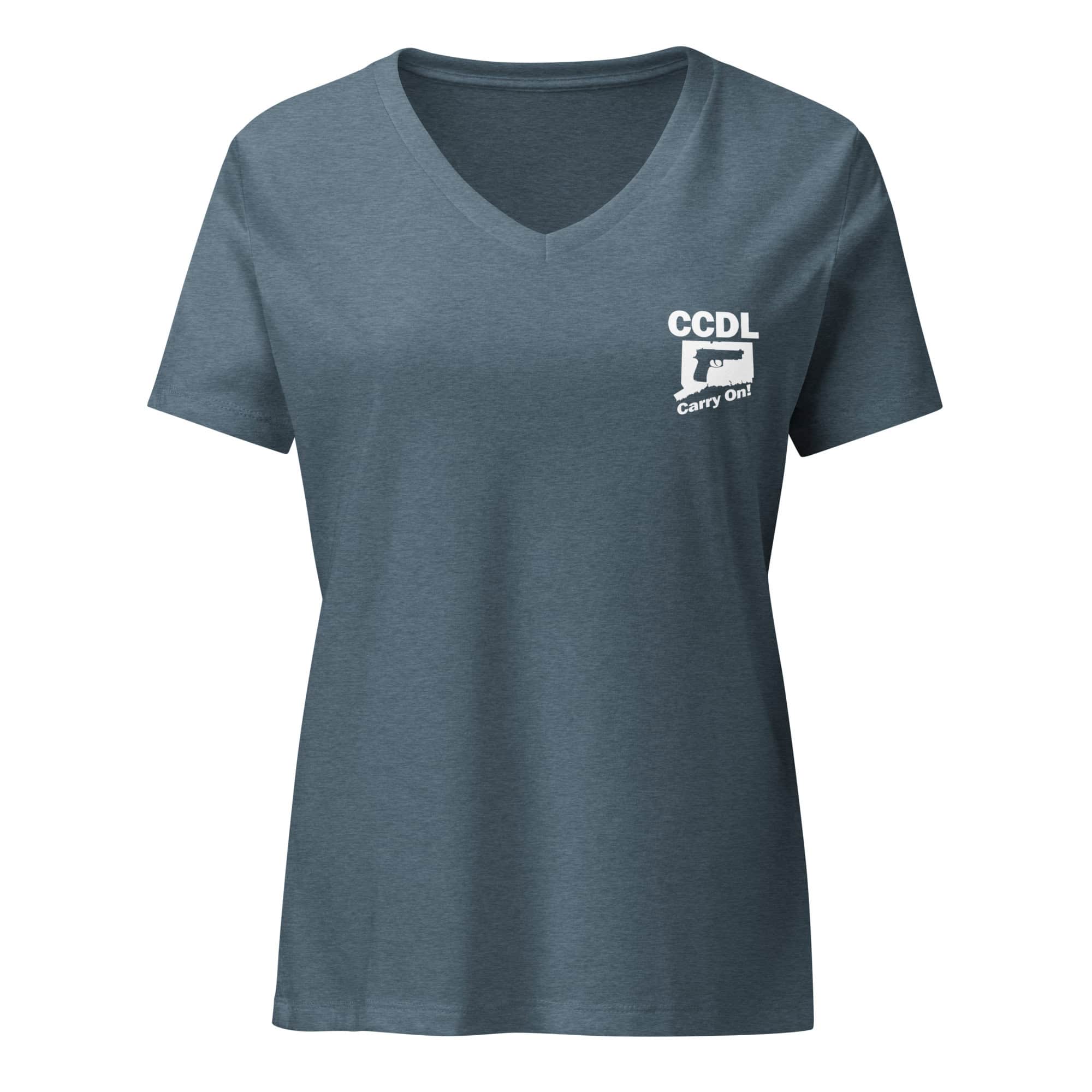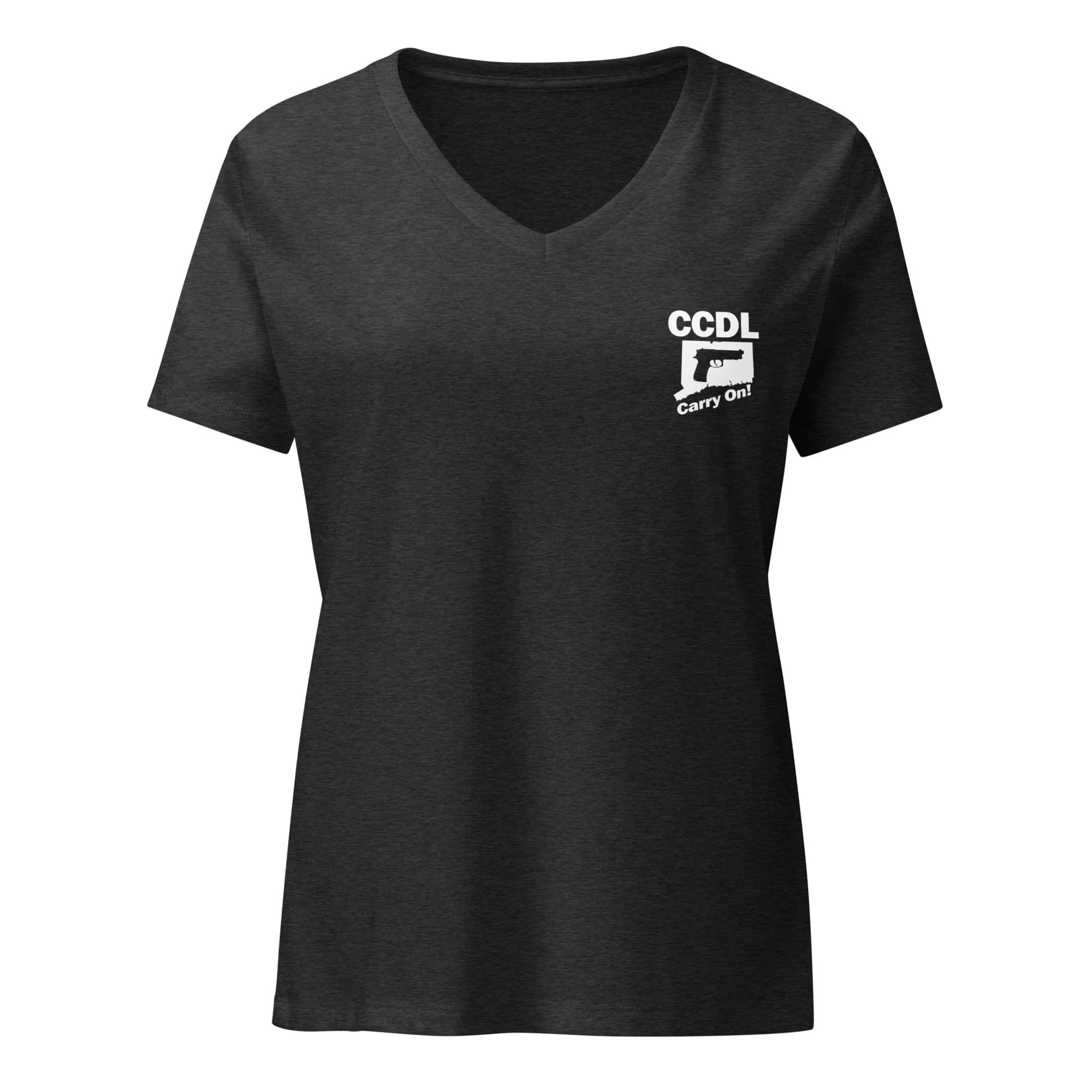 Women’s Relaxed V-Neck Tee featuring the NEW refreshed “CCDL Classic” tee graphics, a modern refresh of an iconic classic.