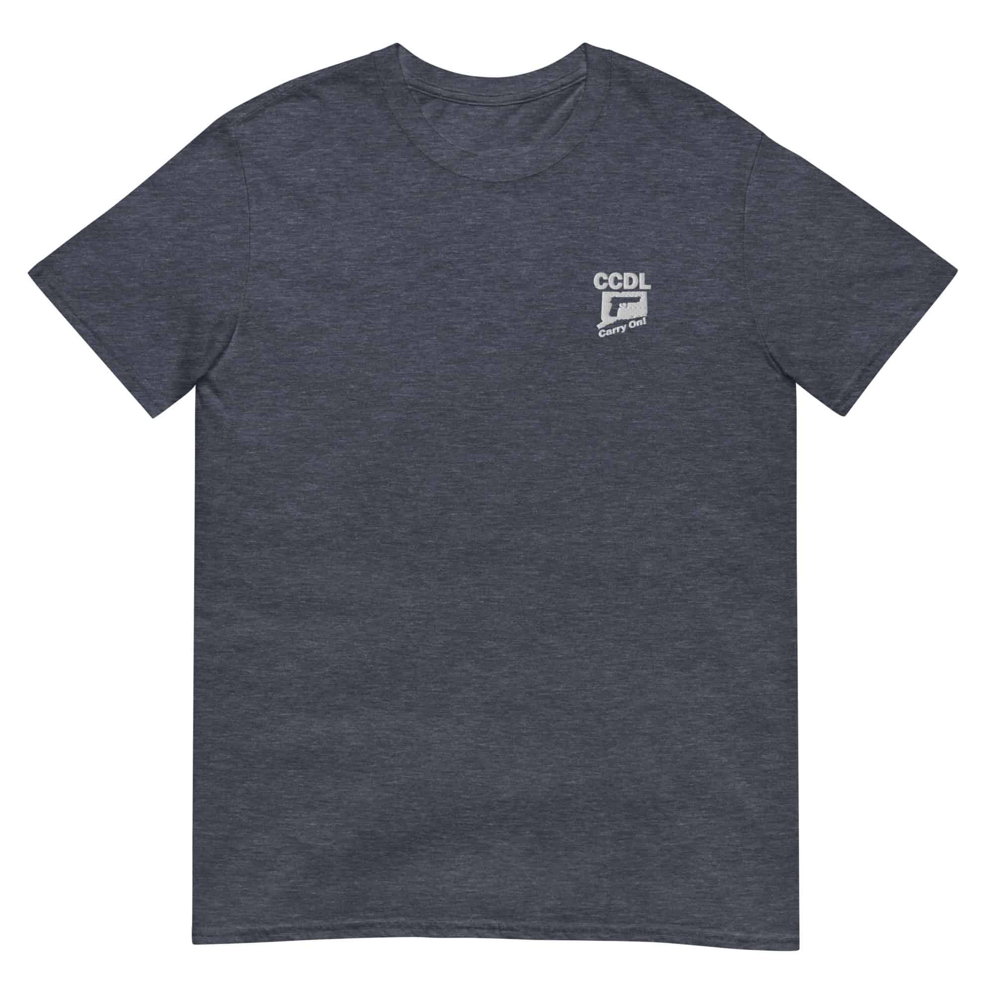 Unisex soft tee, featuring an embroidered CCDL logo. A perfect lower-key pro-2A piece to add to your wardrobe.